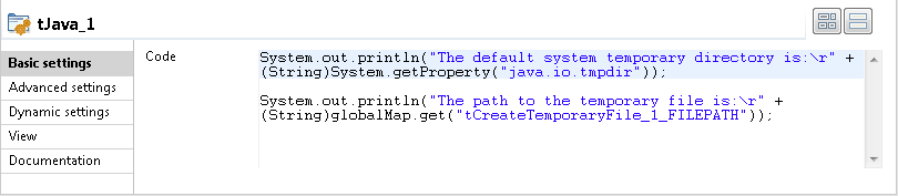 Double-click tCreateTemporaryFile to open