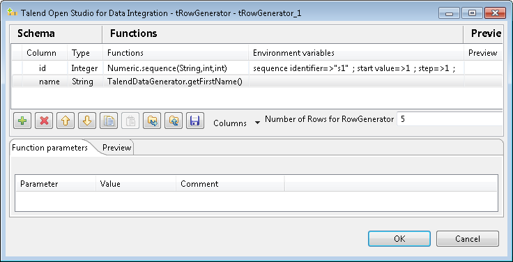 id of Integer type and name of String type. Then in the Functions column, select the predefined function