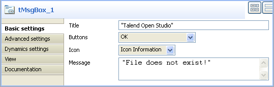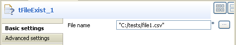 In the design workspace, select tFileInputDelimited and click the Component tab to define its basic settings.
