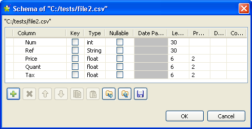 The schema in file2 consists of five columns: Num, Ref, Price,