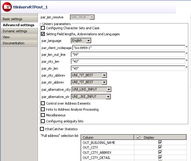 Double-click tUniservRTPost and enter its