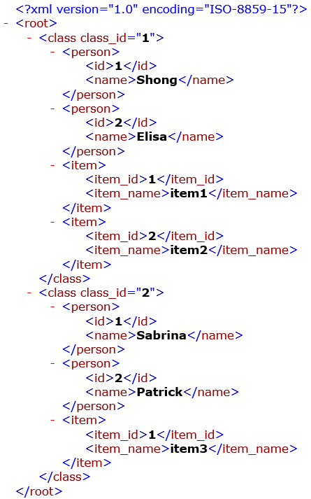 can see that there are two loop elements in the file: person and item. However, the