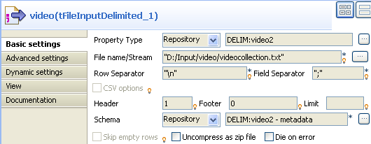 If you didn't setup the file description in the Repository, then select Built-in and manually fill out the fields displayed on the