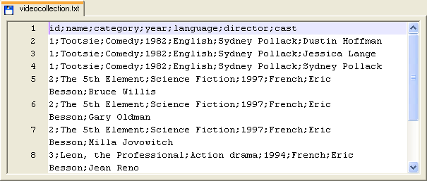 semi-colons: id, name,