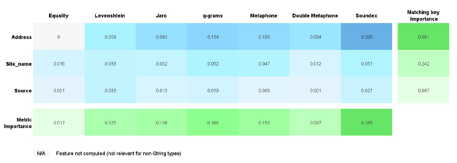 After setting different matching keys and running several Jobs, you can see that some features are not important to the model.
