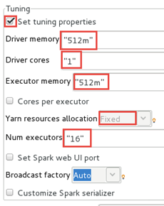 6. In the Tuning panel, select the Set tuning properties option and configure the fields as follows.