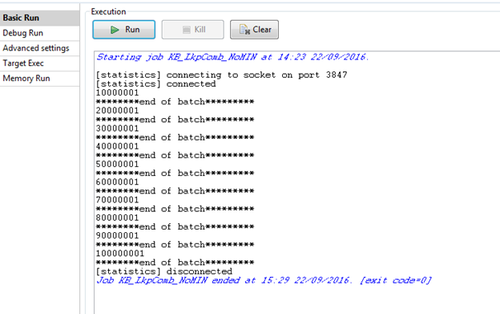 The Job took 66 minutes to run and ran within the memory available on the execution server. It did not get impacted with out of memory exceptions.