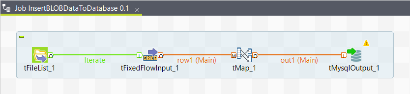- The tMysqlOutput inserts the BLOB data into the target table.
