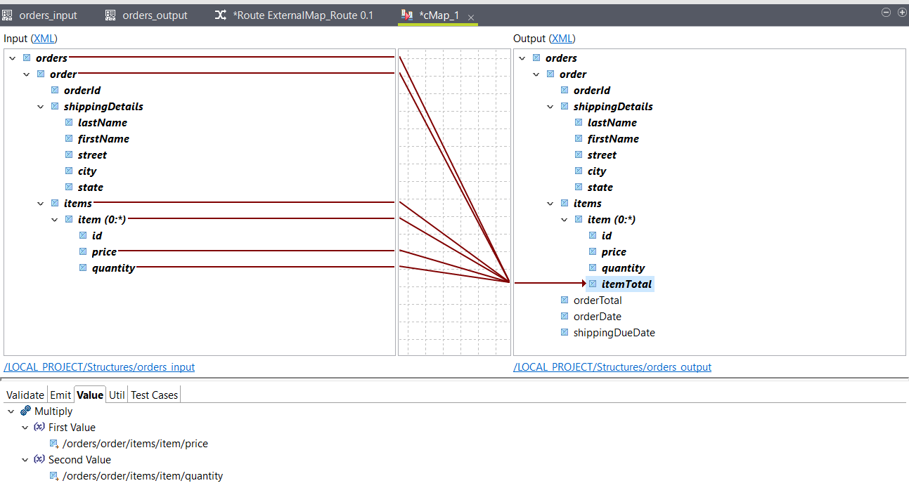 Drag the input orders element on the output