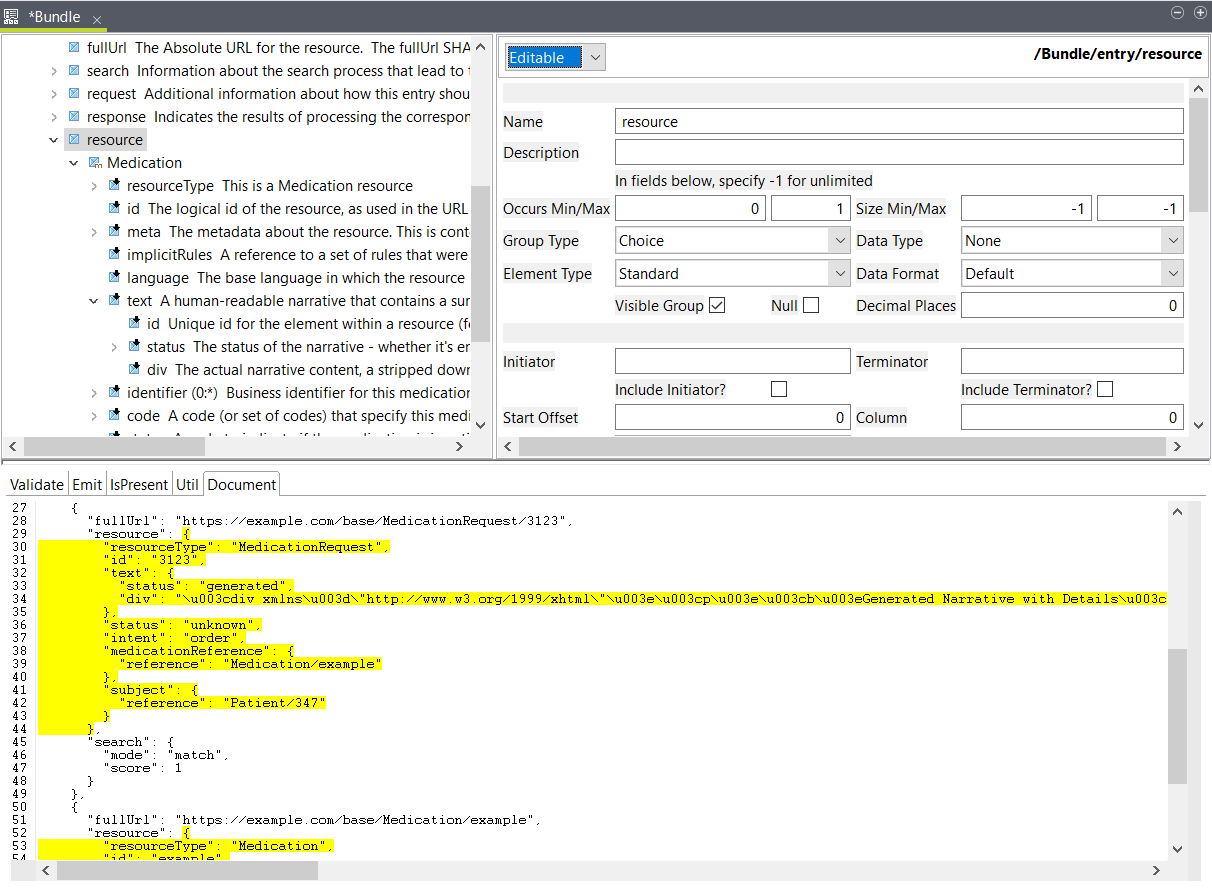 - Double-click the Bundle structure in the folder where you imported the FHIR specification.