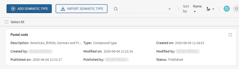 The Postal code type is now available in the list of semantic types with the status set as Published.