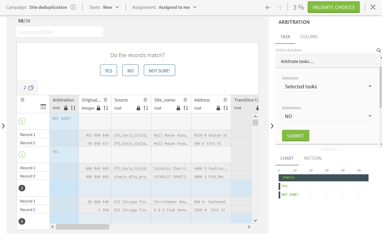 Choices are set, data records are resolved, validated and moved from your list.
