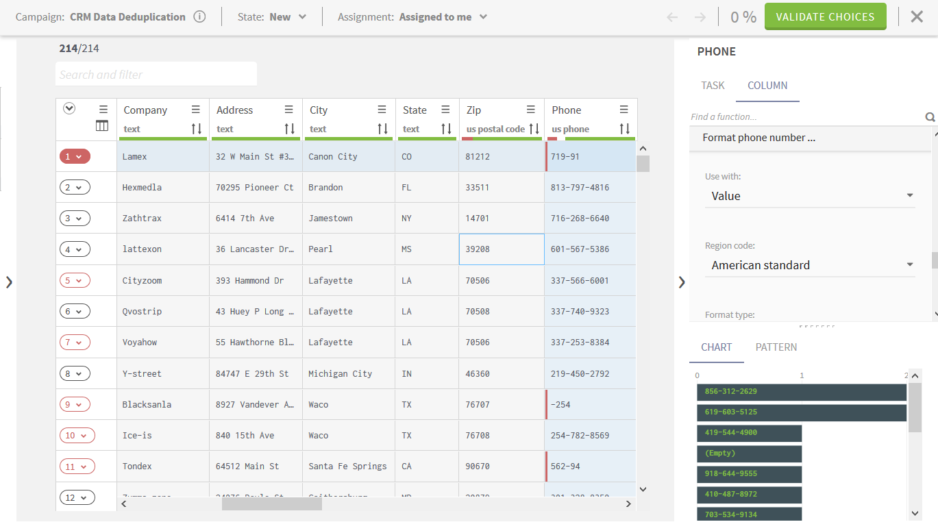 In this example, phone numbers are not conformed to the general format of the