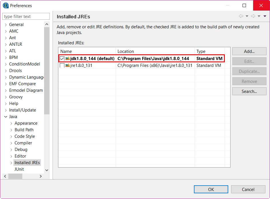 Information noteWarning: If you have several Java instances installed, make sure to remove the JREs in the