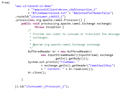 As shown above, the message flow is routed from s3consumer_cAWSS3_1 and processed by s3consumer_cProcessor_1.