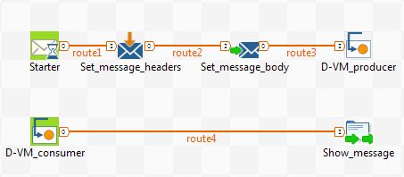 Link the cTimer, the cSetHeader, the cSetBody and the first cDirectVM components using Row > Route connections to