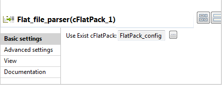 Double-click Flat_file_parser to display its Basic settings view in the Component tab.