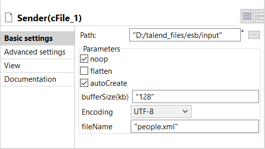 Sender to display its Basic settings view in the Component tab.