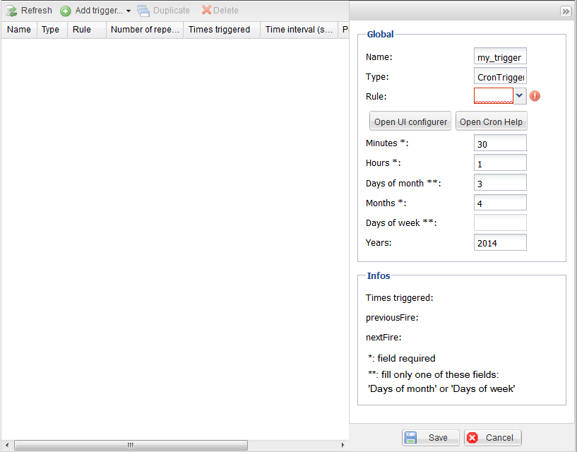 From this Scheduling view, you can plan the execution of a rule for each migration task, using time triggers. For further information about how to schedule a rule executionScheduling a rule execution