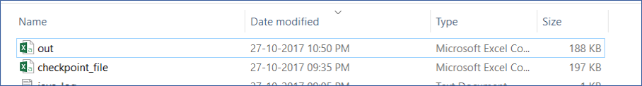 The first image below shows the files at the time of the Job failure, and the second image shows the files after restartability.