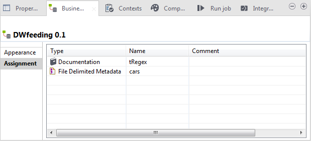 The Assignment tab displays in a tabular form details of the Repository attributes you allocated to a shape or a connection.