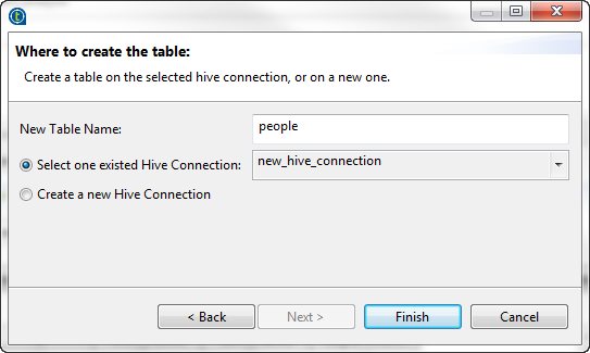 connection if you select the Create a new Hive