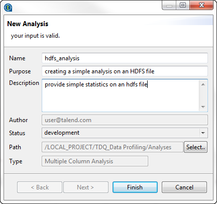 Set the analysis metadata and click Finish.