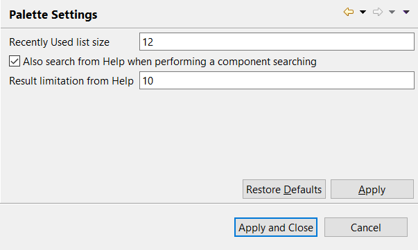 To limit number of components that can be displayed on the Recently Used list, enter your preferred number in the Recently used list size field.