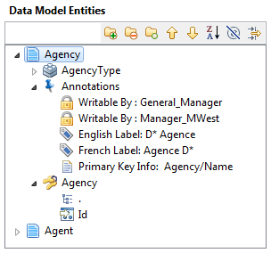 The data model editor makes it very easy to add specific annotations to any business entity in the data model.
