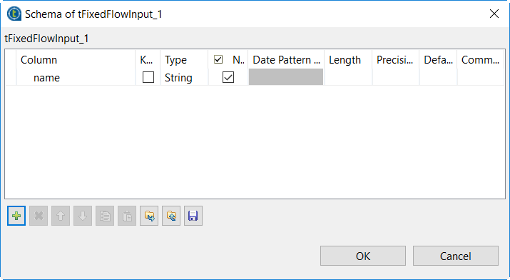 3. Click the [...] button next to Edit schema to open the [Schema] dialog box and define the schema of the input data. In this example, the schema has only one column name of the string type.