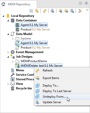 After items are deployed, you are allowed to undeploy them so as to remove their information directly from the MDM Server.
