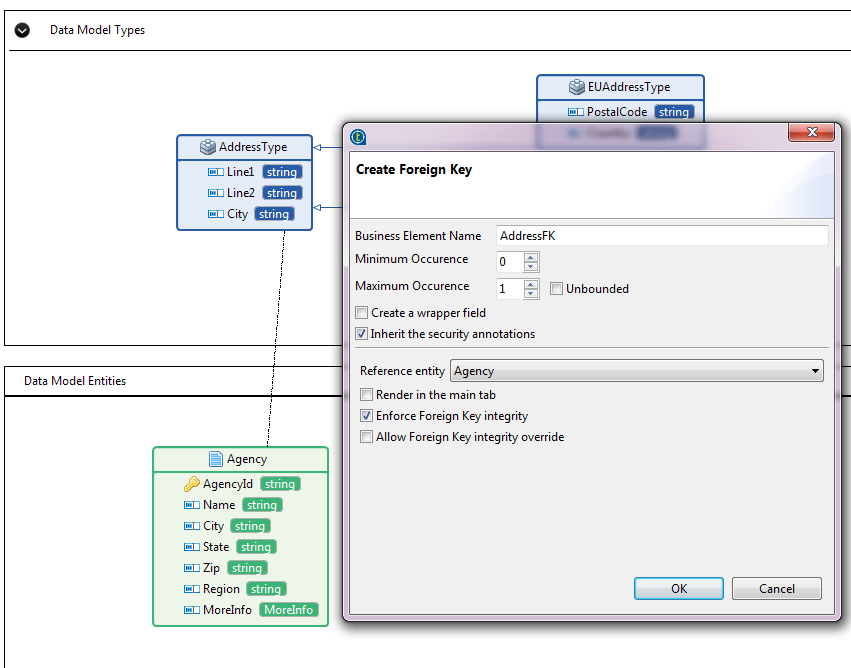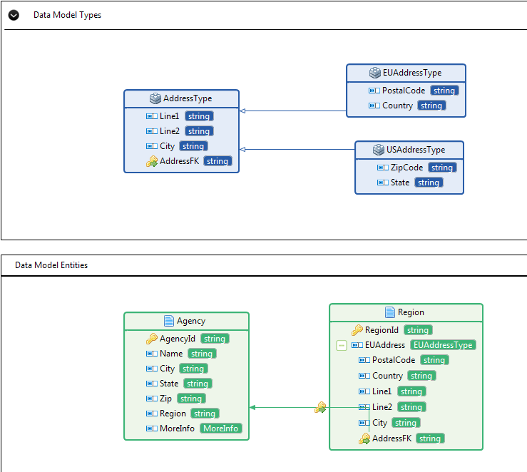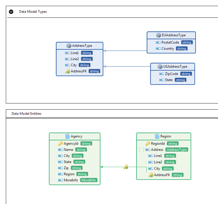 For example, suppose you have a Region entity in the DStar data model, and now you want to add a new element of the complex type AddressType to the Region entity. The foreign key AddressFK will be reused.
