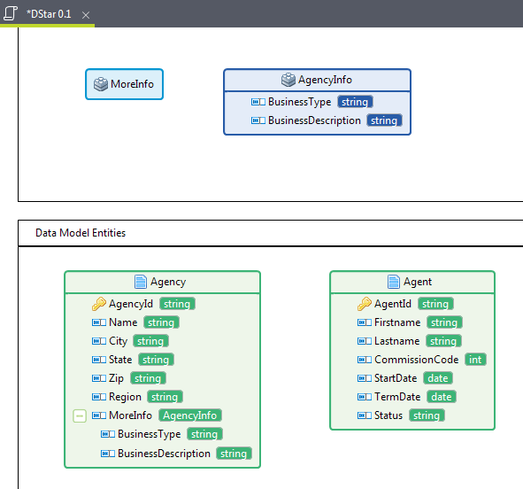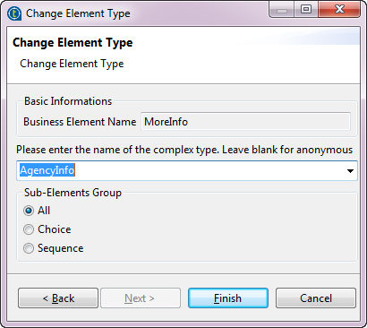 The following example shows how to change the type of the element MoreInfo in the Agency entity from a custom type to a complex type: