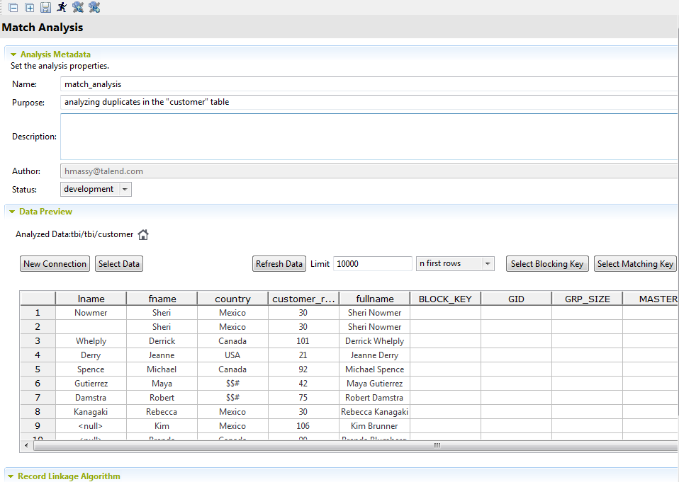 - SCORE: measures the distance between the input record and the master record according to the matching algorithm used.