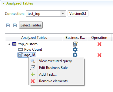 In this example, you want to add the SQL business rule created in Creating an SQL business rule to a top_custom table that contains an age column. This SQL business rule will match the customer ages to define those who are older than 18.