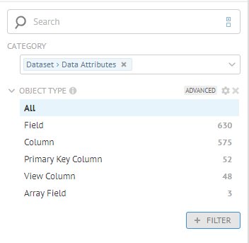 Parent Object Type | Filter by the type of parent object, e.g., all objects in a schema |