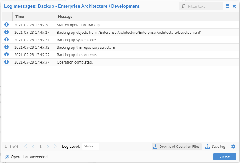 - Any repository backup may contain repository objects having repository object dependencies, which is generally the case for a Directory, Configuration, Data Mapping, Semantic Mapping or Physical Data Model. Each dependent repository object is saved in the backup with its full path from the root. Therefore, when performing the backup, the start level name must not conflict with any root level object names.