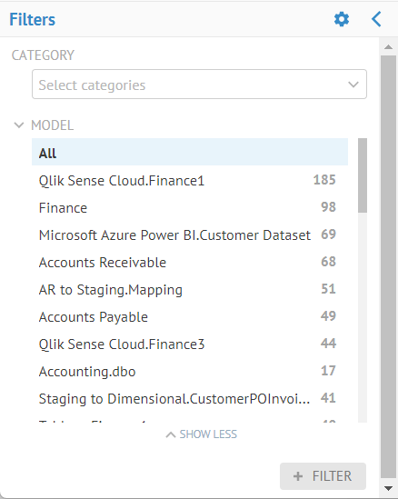 - Click +FILTER and select Model.