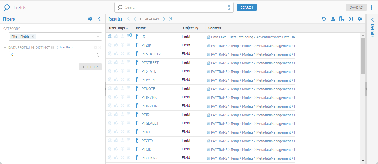 Click +FILTER and select Data Profiling Distinct, specify less than and specify 6.