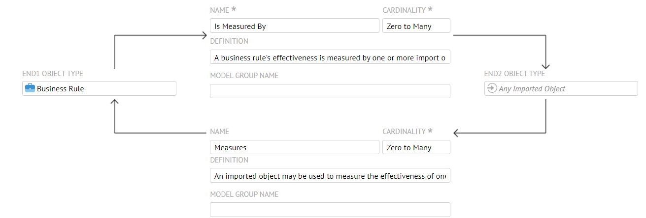 As we can see from the MANAGE > Metamodelpage, there is an association between the two different models for business policies and business rules.