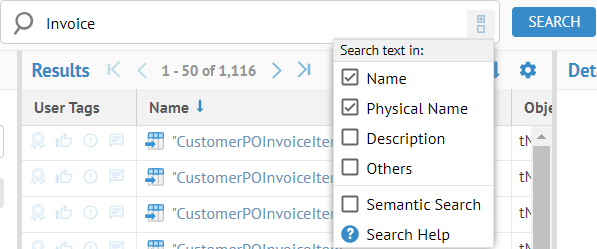 Open a worksheet by clicking the Search box in the upper right corner, entering “Invoice” and pressing ENTER. Click Search Options