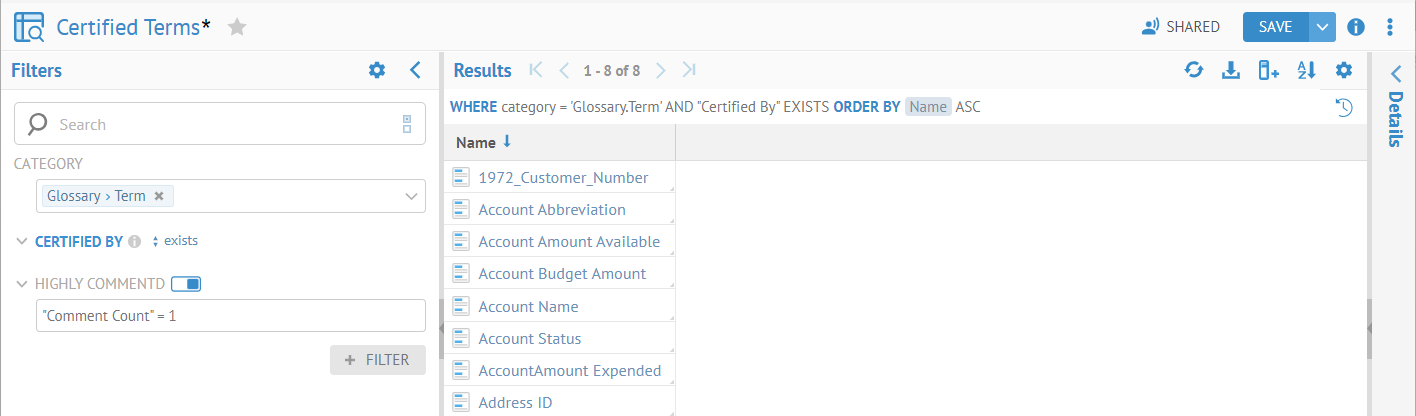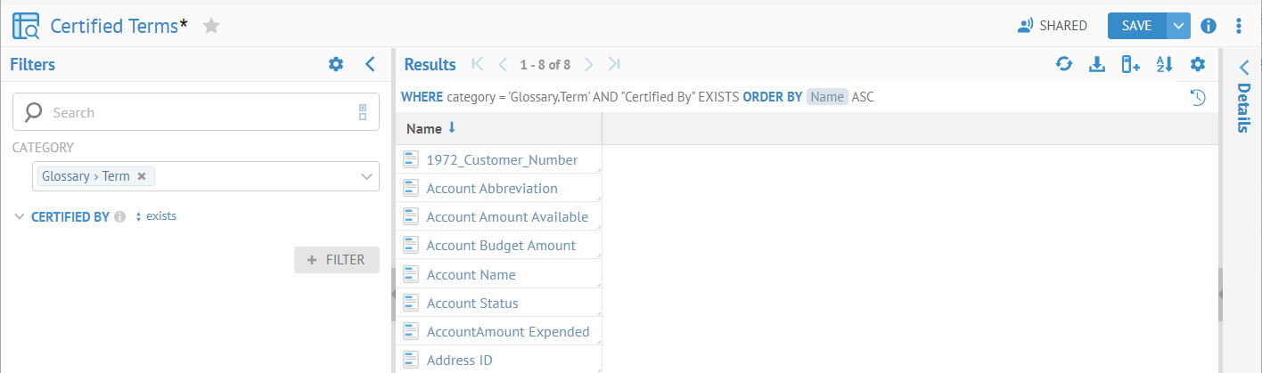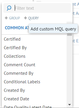 The MQL is available through the REST API and constitutes the foundation of the search / worksheet page. For syntax details, refer to the Developer Guide.