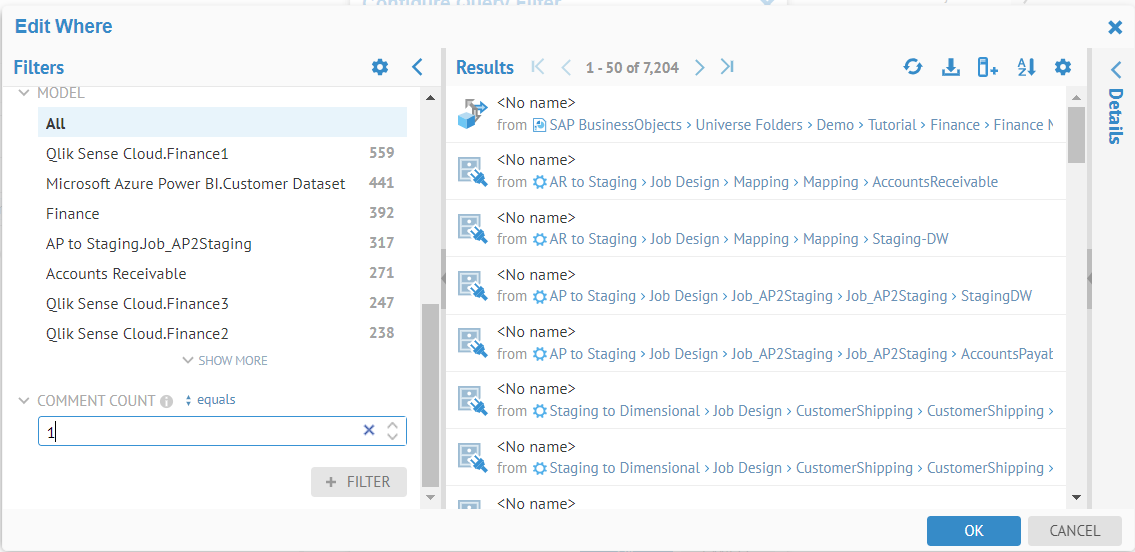 Metadata Query Language and Query Filters