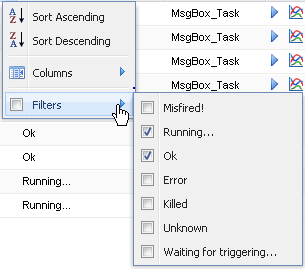 Si vous souhaitez uniquement faire apparaître les tâches en cours d'exécution et celles qui ont été exécutées avec succès, procédez comme suit :