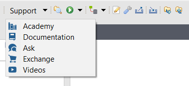 | Amélioration de la barre en haut du Studio Talend | Un menu déroulant Support est disponible sur la barre en haut du Studio Talend pour faciliter votre accès aux ressources de support en ligne et aux vidéos intégrées à Talend.