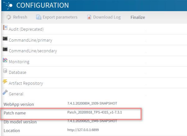 | Version des patchs | Talend Administration Center affiche à présent la version des patchs lorsqu'un patch est installé dans le groupe General de la page Configuration.