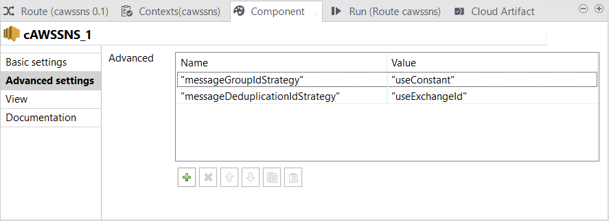 Le composant cAWSSNS vous permet à présent de spécifier une configuration personnalisée dans l'onglet Advanced settings.