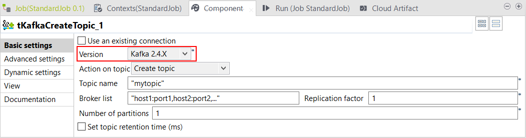 Ces variables sont utiles pour couvrir les erreurs lorsque l'option Die on error (Arrêter en cas d'erreur) de la vue Basic settings (Paramètres simples) du tKafkaOutput est désactivée. |