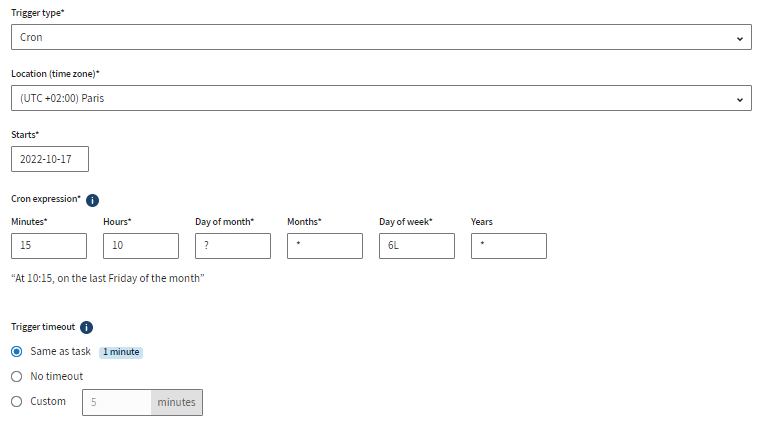 | Nouveau type de déclenchement Cron | Vous pouvez à présent planifier l'exécution de vos tâches et plans de Jobs de manière régulière sur une période de temps donnée, grâce aux déclenchements Cron.