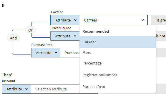 | Association automatique des variables de règles et des attributs du modèle de données | Les variables des règles sont à présent automatiquement associées aux attributs du modèle de données lorsque le nom de la variable et de l'attribut sont similaires ou identiques. Vous pouvez toujours sélectionner un autre attribut dans la liste déroulante. Pour plus d'informations concernant les règles de qualité de données, consultez Utiliser des règles de qualité de données. |
